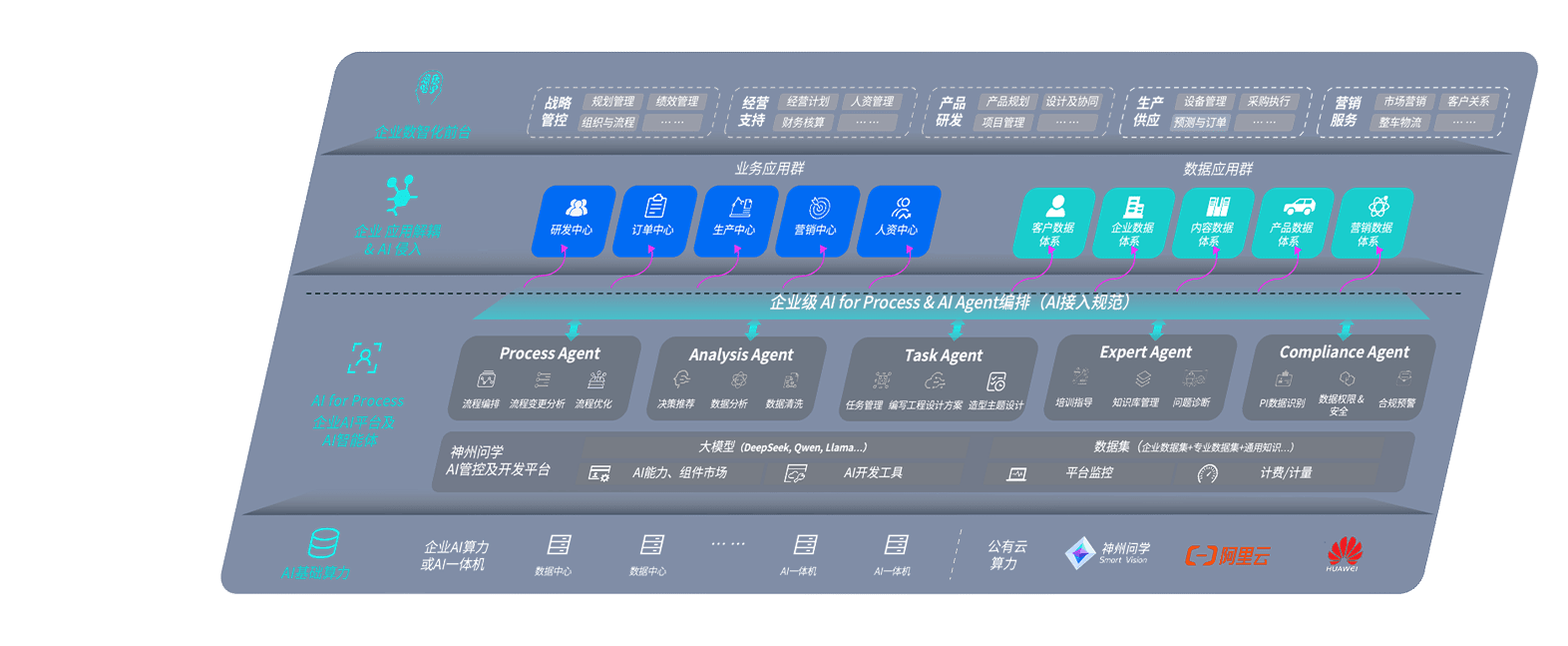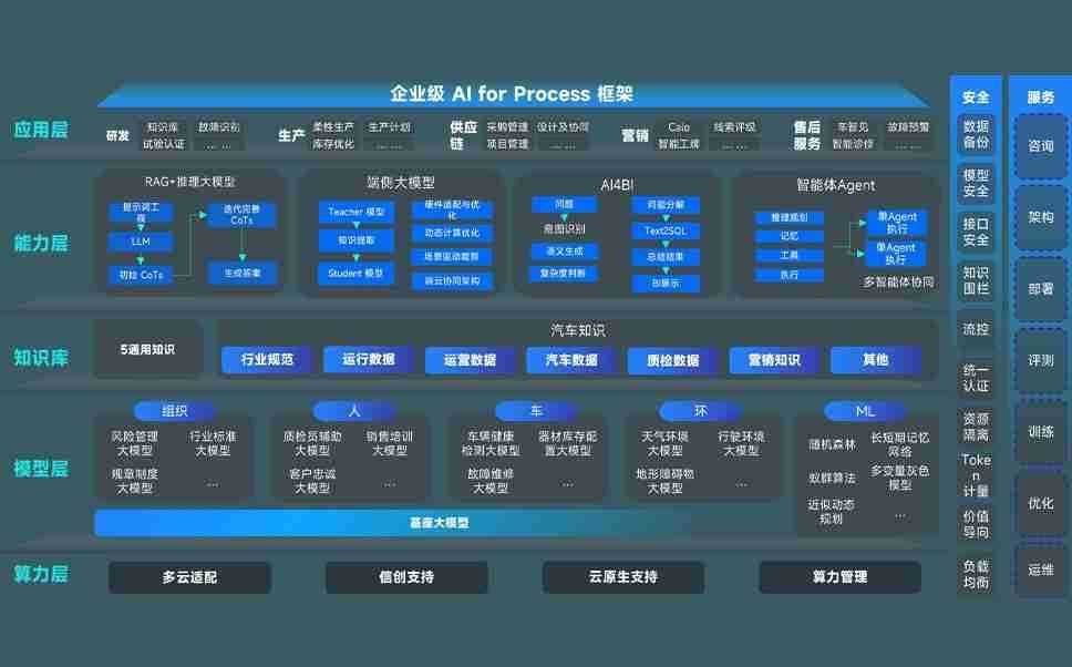 端到端的一站式AI工作空间深度融合了从企业战略规划到日常经营的全流程业务板块,,,,定向解决车企内部领域多、、、部门多、、、、链条长、、、、场景碎片化等难题,,支持车企快速构建以AI为核心的生产力写作体系,,实现任务执行与AI能力的无缝集成与交互